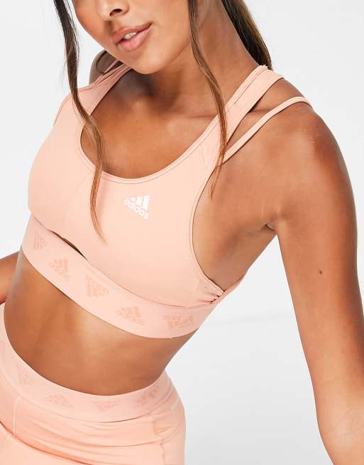 adidas - Training - Reggiseno sportivo a supporto leggero rosa cipria con cut-out