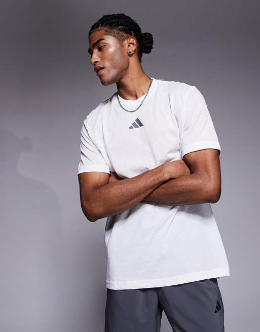adidas Training - T-shirt bianca con stampa "Progress" sul retro