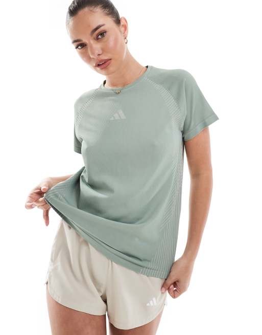adidas - Training - T-shirt verde argento senza cuciture