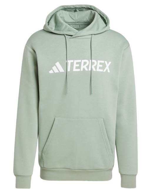 adidas Terrex - Felpa con cappuccio verde argento con logo grande