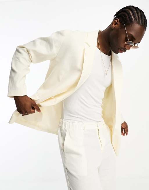 ADPT - Giacca da abito doppiopetto comoda in lino bianco sporco