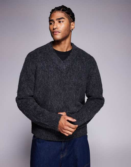 ADPT - Maglione soffice grigio scuro con scollo a V
