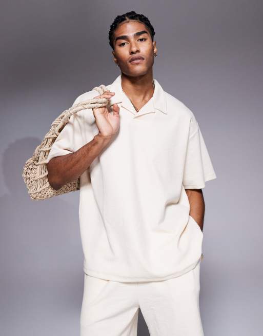 ADPT - Polo color crema testurizzata con spacco sul collo