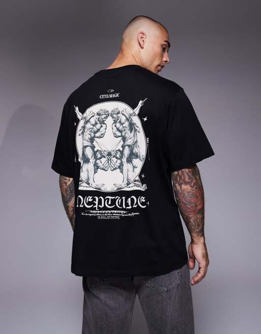 ADPT - T-shirt oversize nera con grafica sul retro