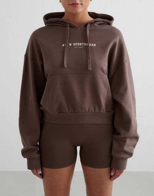 Aim'n - Felpa con cappuccio stile college in spugna grossa color caffè macchiato