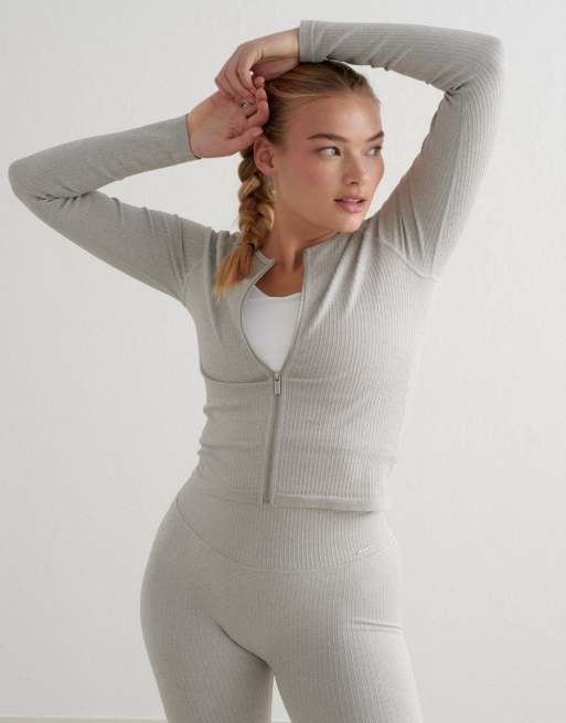 Aim'n - Giacca senza cuciture grigio mélange a coste con zip