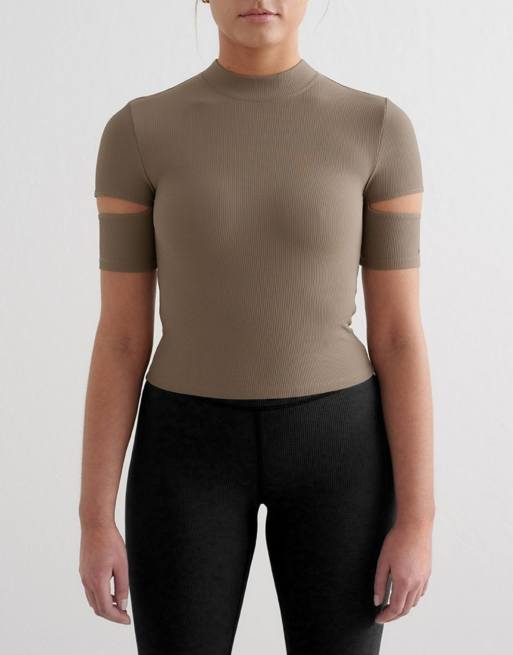 Aim'n - Nougat - Top tecnico a coste marrone con cut out