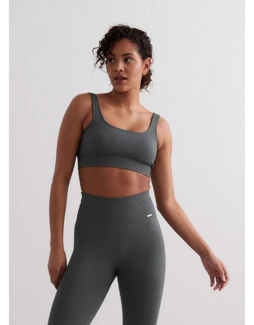 Aim'n - Reggiseno verde salvia a coste senza cuciture