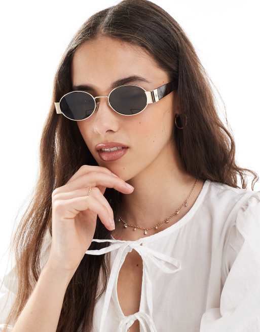 Aire - Mars II - Occhiali da sole slim ovali in metallo con stanghette tartarugate