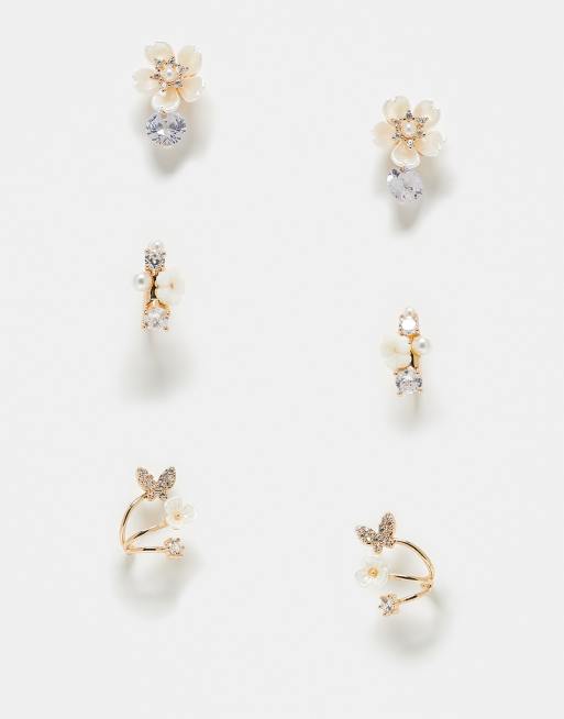 ALDO - Arluna - Confezione da 3 paia di orecchini dorati con fiori