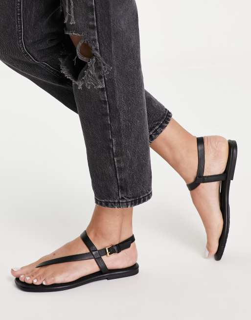 Aldo - Holthuis - Sandali bassi in pelle nera con barretta a T