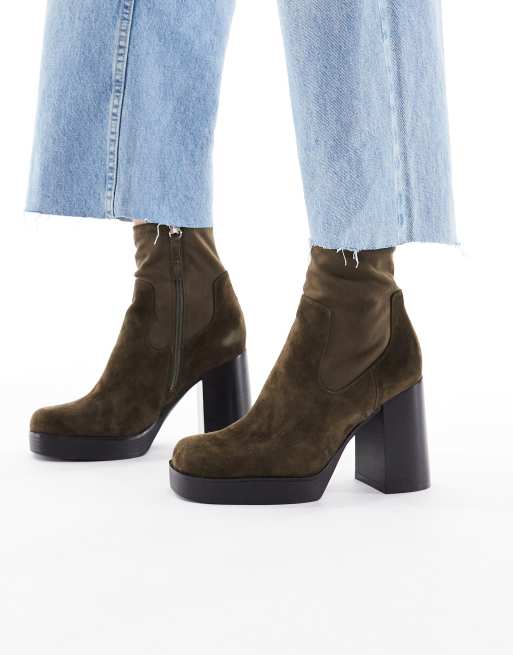 ALDO - Seraphica - Stivaletti a calza con tacco largo in pelle marrone