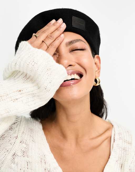 AllSaints - Basco in feltro nero con logo in pelle tono su tono