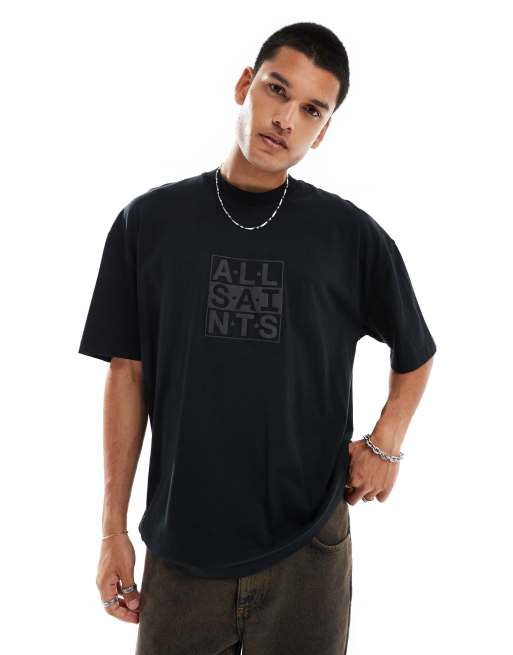 AllSaints - Below - T-shirt nera con logo tono su tono