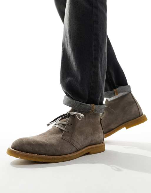 AllSaints - Bilton - Stivaletti stringati in camoscio color talpa
