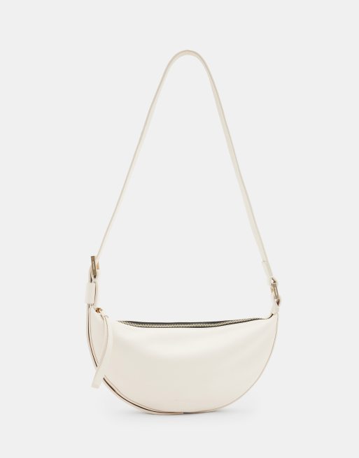 AllSaints - Borsa a mezza luna bianca a tracolla