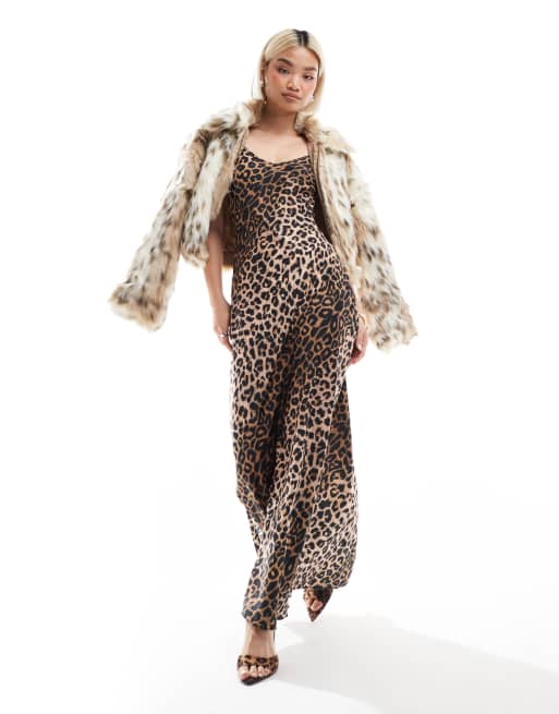 AllSaints - Bryony Iona - Vestito sottoveste lungo in raso giallo leopardato