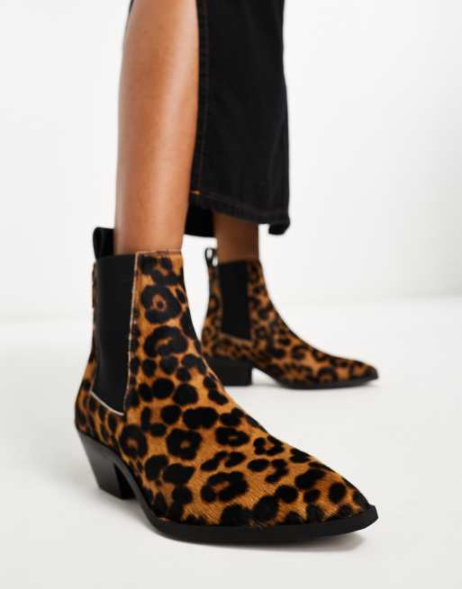AllSaints - Fox - Stivaletti con tacco leopardati in pelle