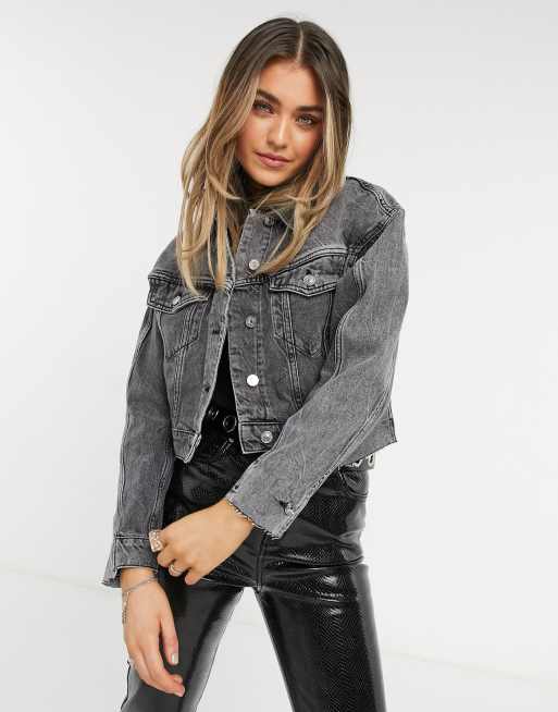 AllSaints - Giacca di jeans destrutturata grigio slavato