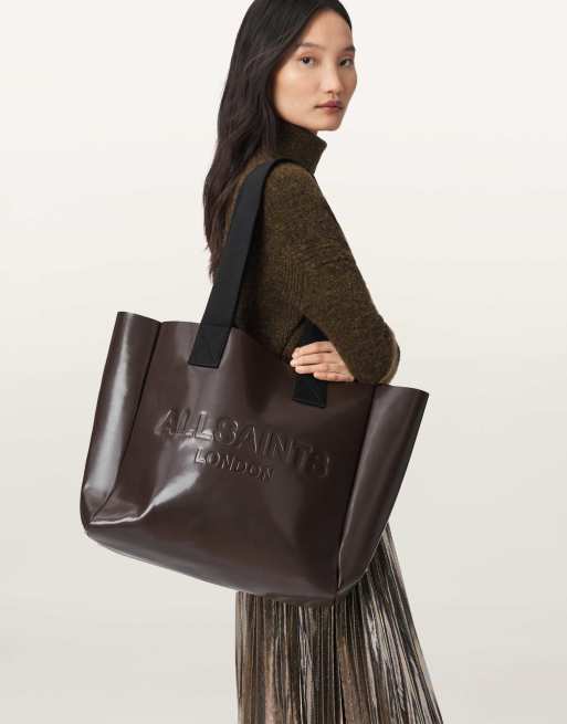 AllSaints - Izzy - Borsa shopping marrone in pelle