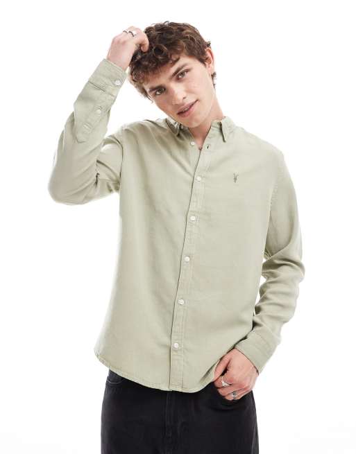 AllSaints - Laguna - Camicia a maniche lunghe in lino color verde