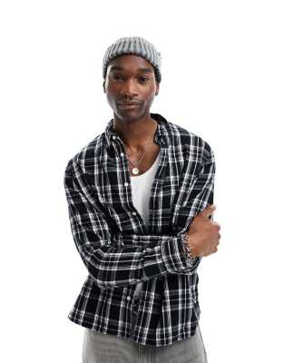 AllSaints - Leulus - Camicia a maniche lunghe nera a quadri
