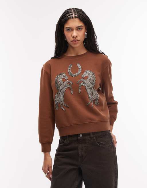 AllSaints - Luck Pippa - Felpa in maglia con decorazioni rosso marrone