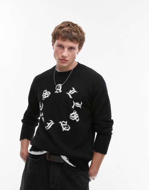 AllSaints - Scripture - Maglione lavorato nero con logo