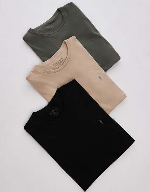 AllSaints - Tonic - Confezione da 3 T-shirt color nero, verde e bianco