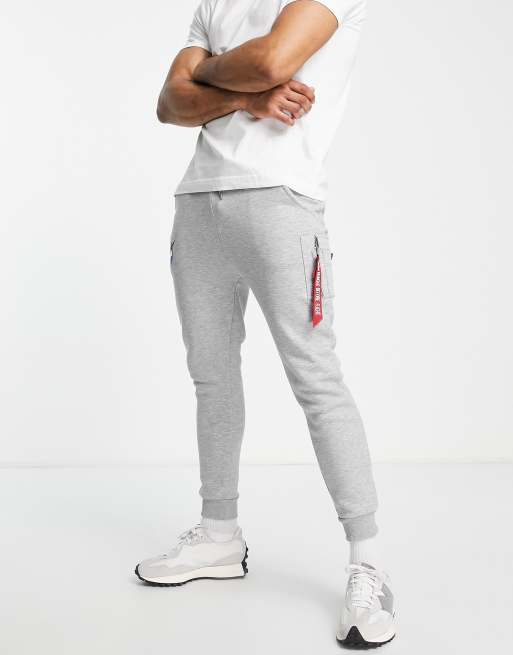 Alpha Industries - Joggers cargo sportivi grigio mélange con logo NASA