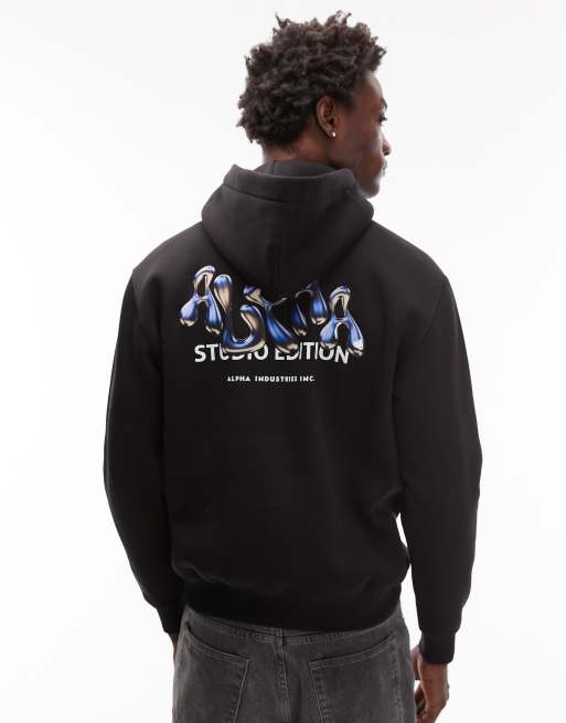 Alpha Industries - Studio Edition - Felpa nera con cappuccio e logo