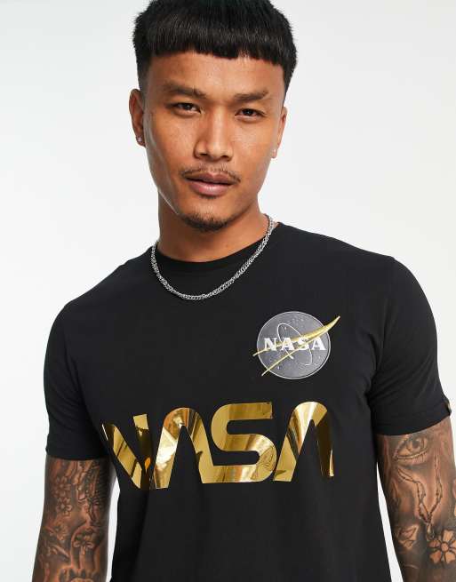 Alpha Industries - T-shirt nera con logo NASA riflettente