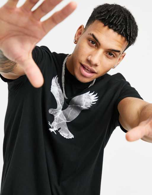 American Eagle - T-shirt nera con logo frontale con aquila