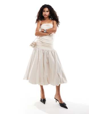 Amy Lynn - Alexa - Vestito midi con fondo a sirena e spalline annodate color visone