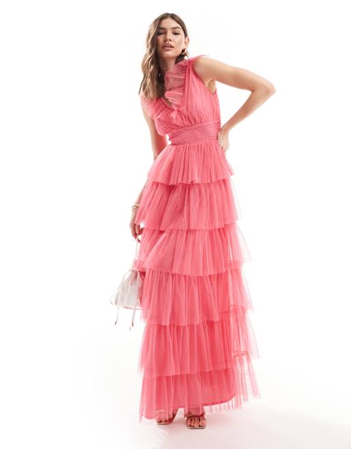 Anaya - Vestito lungo rosa acceso a balze con volant