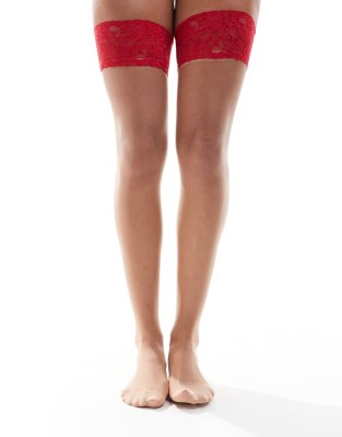 Ann Summers - Autoreggenti con parte superiore in pizzo rosso