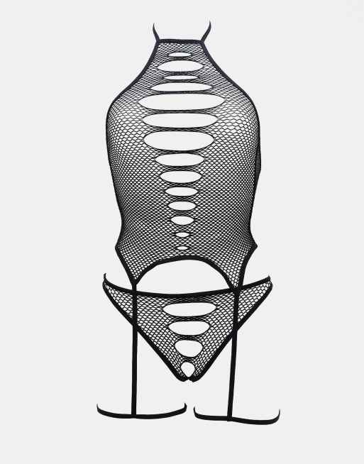 Ann Summers - Enya - Completo intimo nero con design aperto e reggicalze