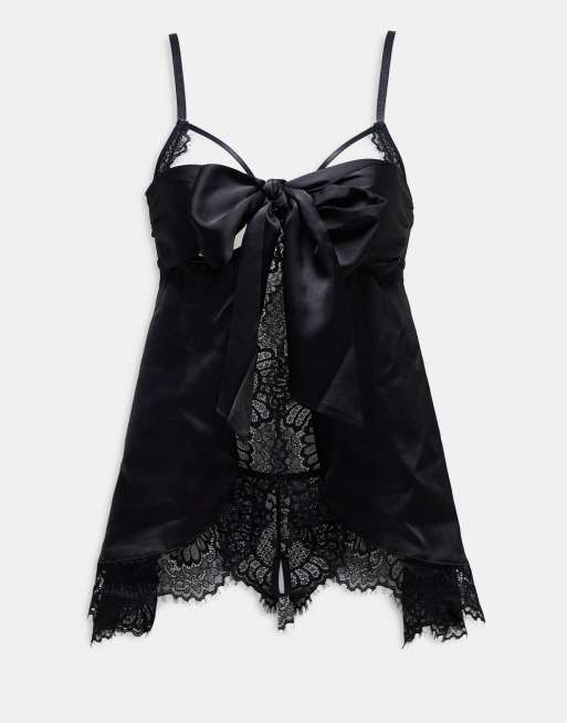 Ann Summers - Unwrap Me - Babydoll nero con perizoma con cut-out