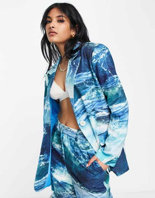 Annorlunda - Blazer con stampa di oceano blu in coordinato