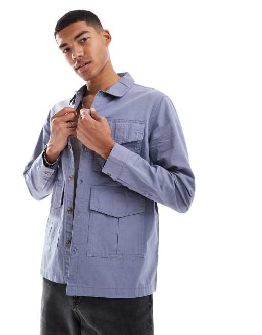 Another Influence - Camicia giacca multitasche in ripstop blu denim