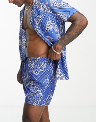 Another Influence - Coordinato con costume da bagno con stampa bandana blu in coordinato
