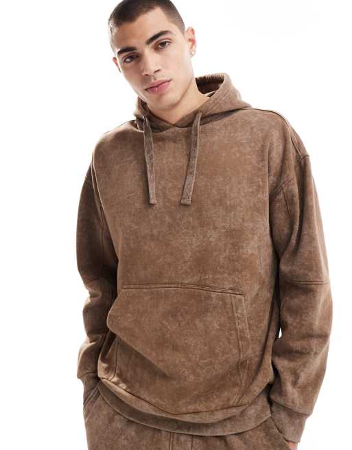 Another Influence - Felpa con cappuccio marrone lavaggio acido