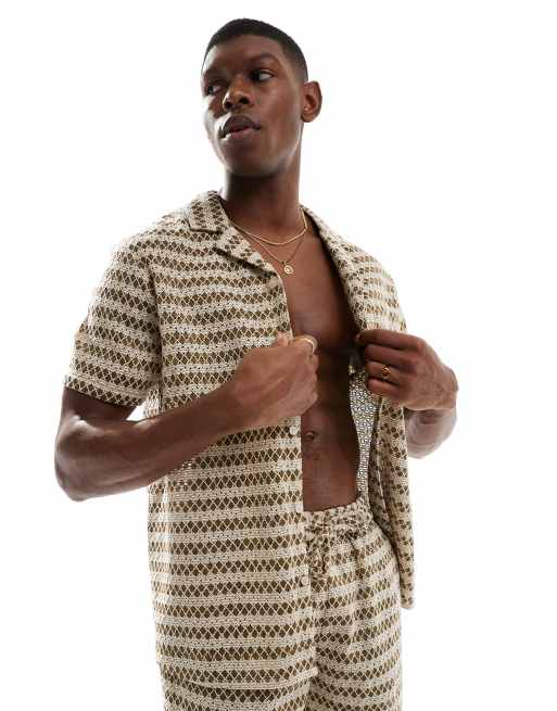 Aray - Camicia da mare a maniche corte all'uncinetto verde oliva