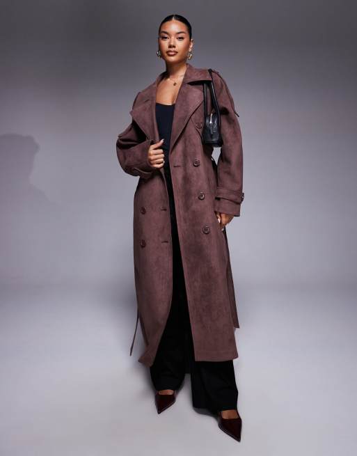 Aria Cove - Trench lungo in camoscio sintetico color cioccolato con cintura