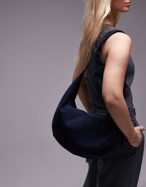 ARKET - Borsa da spalla morbida di forma curva in camoscio blu navy