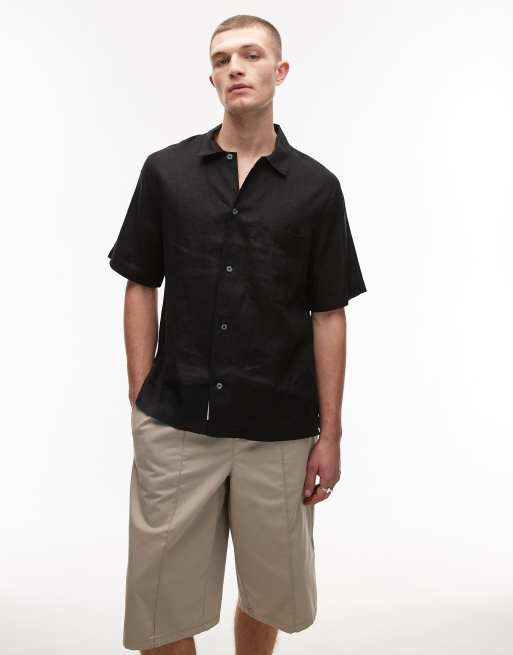ARKET - Camicia a maniche corte nera in lino con tasca sul davanti