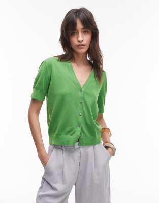 ARKET - Cardigan in maglia sottile in puro cotone verde con maniche corte