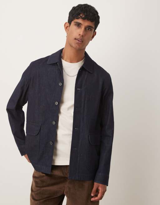 ARKET - Giacca di jeans comoda blu lavaggio scuro con tasca sul petto