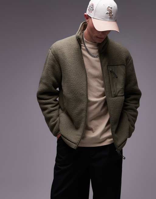 ARKET - Giacca in pile kaki con zip bidirezionale