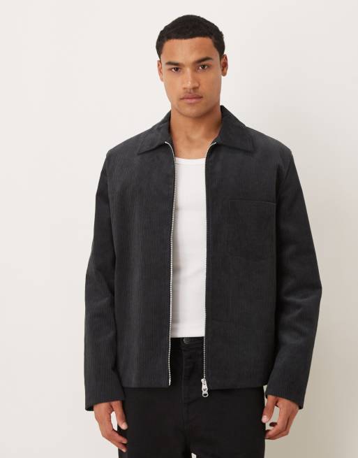 ARKET - Giacca in tessuto a coste blu navy con zip e tasche sul davanti